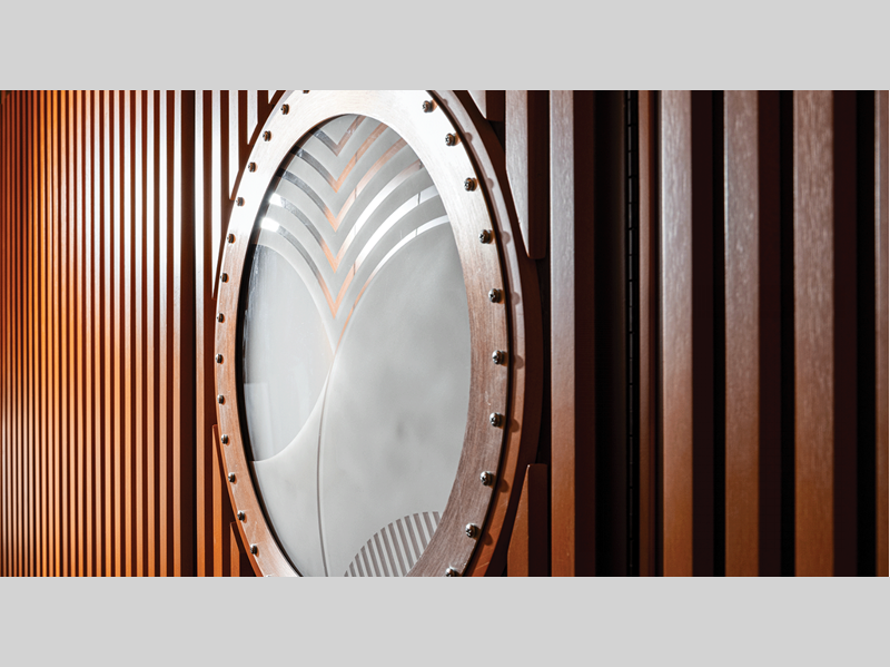- Circular Porthole Behind Mirror and Vista Window with Shade