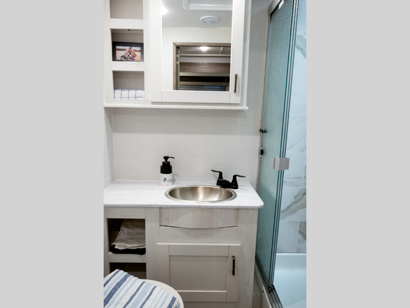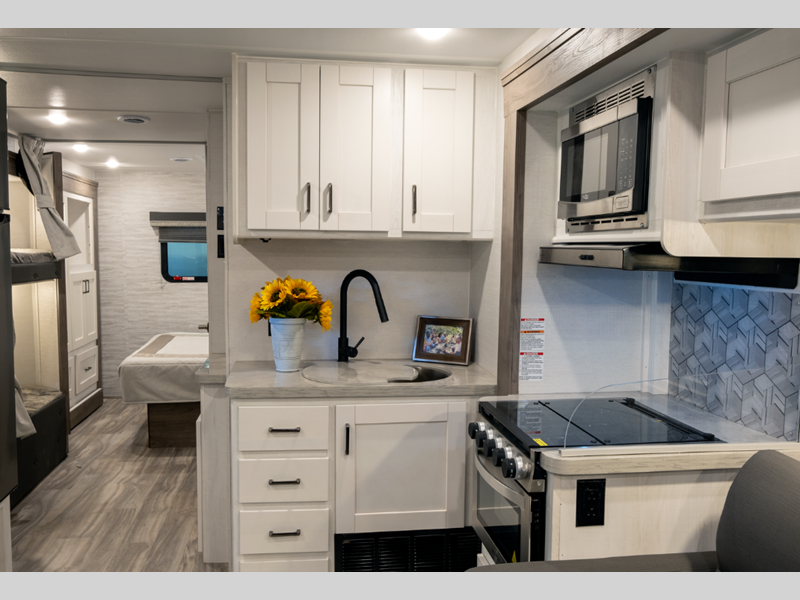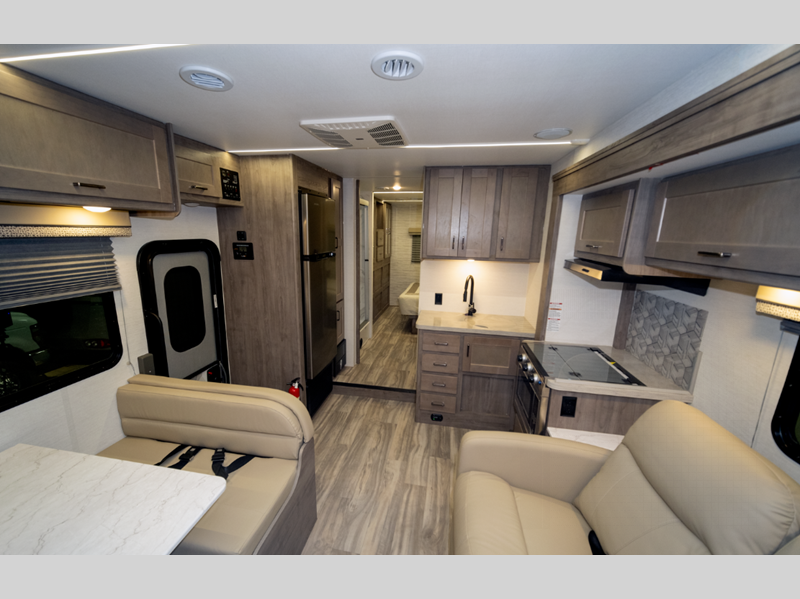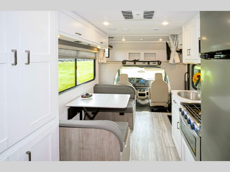 Sleeps 5 Length 24 ft Ext Width 8 ft 4 in Ext Height 11 ft 3 in Int Height 7 ft GVWR 12500 lbs Fresh Water Capacity 31 gals Grey Water Capacity 31 gals Black Water Capacity 31 gals Furnace BTU 25000 btu Fuel Type Gasoline Engine 7.3L V8 Chassis Ford E350 Horsepower 350 hp Fuel Capacity 55 gals Number Of Bunks 1 Available Beds RV Queen Torque 425 ft-lb Refrigerator Type 12V Double Door Refrigerator Size 10.2 cu ft Cooktop Burners 3 LP Tank Capacity 42 lbs Water Heater Type Tankless Gas AC BTU 13500 btu Shower Type Standard Electrical Service 30 amp Similar Floorplans