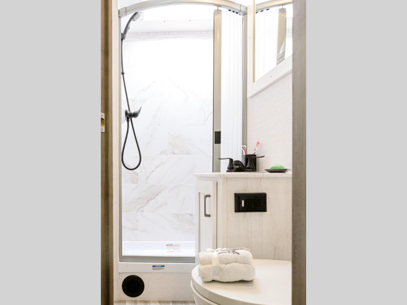 Sleeps 6 Slides 2 Length 32 ft 11 in Ext Width 8 ft 4 in Ext Height 11 ft 3 in Int Height 7 ft 1 in GVWR 14500 lbs Dry Weight 11770 lbs Cargo Capacity 2731 lbs Fresh Water Capacity 29 gals Grey Water Capacity 38 gals Black Water Capacity 38 gals Furnace BTU 35000 btu Generator 4.0 kW Enclosed Fuel Type Gasoline Engine 7.3L V8 Chassis Ford E450 Horsepower 350 hp Fuel Capacity 55 gals Number Of Bunks 1 Available Beds RV Queen Torque 425 ft-lb Refrigerator Type Double Door Refrigerator Size 10.2 cu ft Cooktop Burners 3 Number of Awnings 1 LP Tank Capacity 42 lbs Water Heater Type Tankless Gas AC BTU 13500 btu Awning Info Electric w/LED Lights Shower Type Standard Electrical Service 30 amp Similar Floorplans