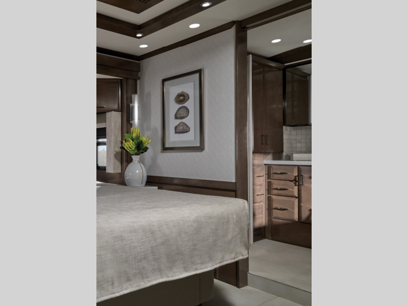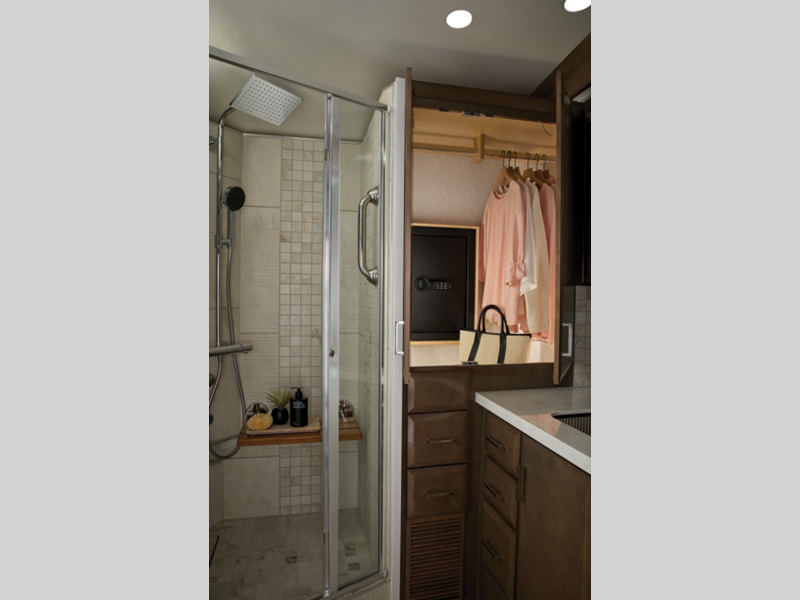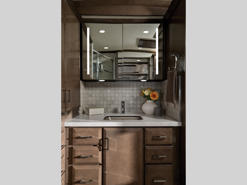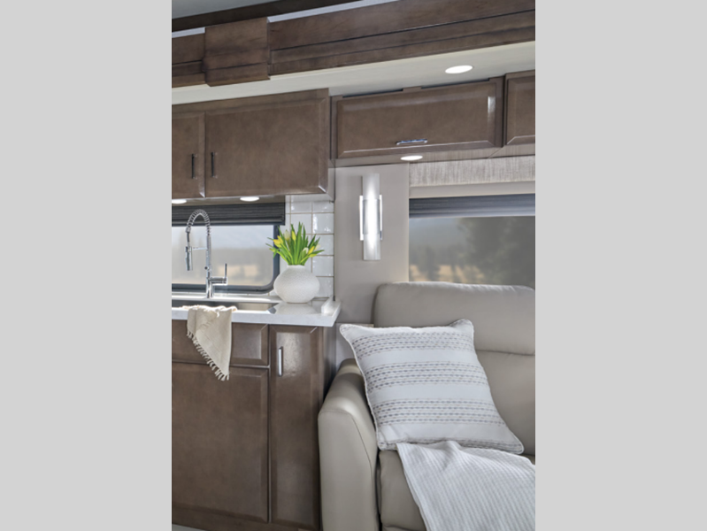 The coaches offer on-site dining with a fully equipped kitchen featuring super polished solid-surface countertops and soft-close cabinet doors with beautifully crafted hardwood cabinetry, plus much more. Each is built exclusively on the Spartan® K3 tag axle chassis with 525 HP making it easy to travel up hills and while towing. Comfort Drive™ adaptive steering, Mobileye® lane tracking and departure system, tire pressure monitoring, electronic stability control, and OnGuard™ collision mitigation technology, along with additional advanced chassis features, provide safety on the road.